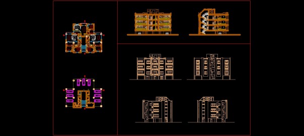 این پلان طراحی معماری شامل نقشه اتوکدی آپارتمان 4 طبقه-7واحده است. پروژه شامل پلان همکف و طبقات، 2 نما، 2 برش، سایت پلان و پلان بام می باشد .که پروژه معماری با افتخار با قیمتی ناچیز در اختیار همه معماران عزیز قرار داده است.