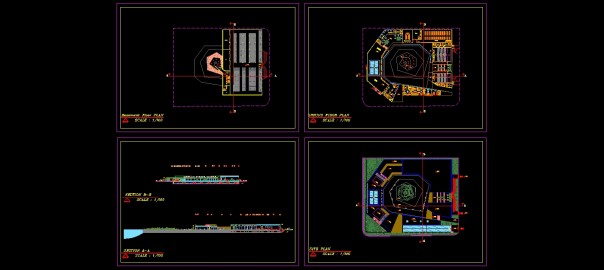 فرهنگسرا با 3 طبقه پلان. این پروژه شامل پلان مبله، پلان اندازه گذاری ، 5 برش، آکس بندی، پلان بام  و سایت پلان می باشد و با افتخار با قیمتی ناچیز در اختیار همه معماران عزیز قرار داده شده است.